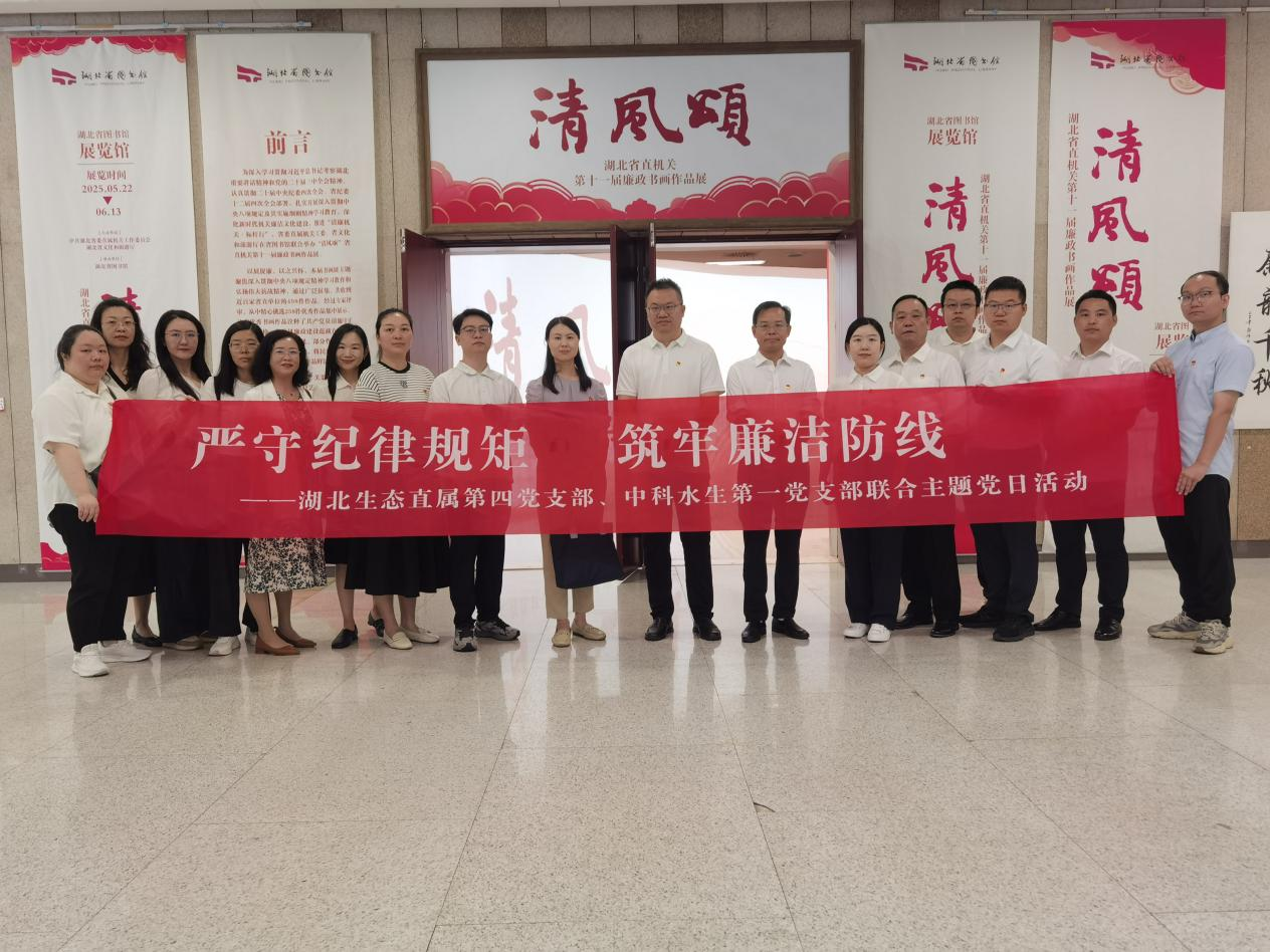 為深入貫徹中央八項規定精神學習教育,扎實推進公司黨風廉政建設,6月13日上午,湖北生態直屬第四黨支部聯合中科水生第一黨支部以“嚴守紀律規矩 筑牢廉潔防線”為主題,組織黨員、統戰人士赴湖北省圖書館開展廉政學習教育暨黨建聯建主題黨日活動。