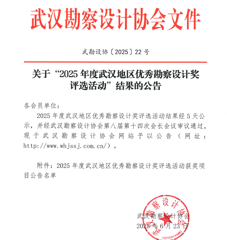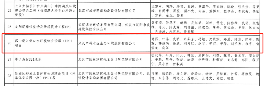 近日,武漢勘察設計協會公布了"2025年度武漢地區(qū)優(yōu)秀勘察設計獎評選活動"結果,武漢中科水生公司申報的磊山湖入湖口水環(huán)境綜合治理(EPC)項目榮獲建筑及園林景觀組設計二等獎。