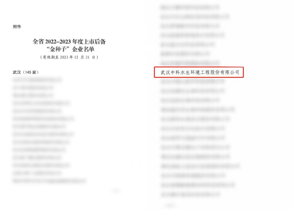 5月27日,湖北省2022-2023年度上市后備“金種子”企業(yè)發(fā)布會(huì)在武漢小龜山金融文化公園召開,武漢中科水生環(huán)境工程股份有限公司位列名單之中,成為湖北省上市后備“金種子”企業(yè)。湖北省人民政府副省長(zhǎng)寧詠出席會(huì)議并講話,省地方金融監(jiān)管局黨組書記、局長(zhǎng)段銀弟主持會(huì)議,湖北證監(jiān)局局長(zhǎng)黨委書記、局長(zhǎng)王廣幼、省政府辦公廳二級(jí)巡視員林竹青、省地方金融監(jiān)管局副局長(zhǎng)嚴(yán)宓、武漢市副市長(zhǎng)趙峰及省上市工作領(lǐng)導(dǎo)小組成員單位相關(guān)負(fù)責(zé)同志,各市(州)、直管市、神農(nóng)架林區(qū)政府分管領(lǐng)導(dǎo)同志、武昌區(qū)政府主要負(fù)責(zé)同志、省級(jí)重點(diǎn)上市后備企業(yè)代表,金融機(jī)構(gòu)負(fù)責(zé)人出席會(huì)議。中科水生董事、常務(wù)副總經(jīng)理、財(cái)務(wù)總監(jiān)兼董事會(huì)秘書申剛參加會(huì)議。