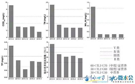 水質、生態景觀及生物多樣性得到提升。劣Ⅴ類提升至穩定達Ⅳ類,中度富營養提升至中營養。