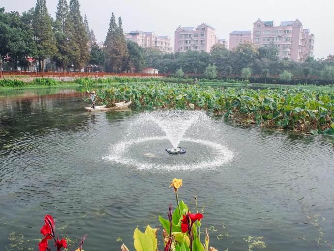 三、沾天湖施工的工程量也已基本完成,但沉水植物種植效果有待進一步提高,挺水植物與浮葉植物品質(zhì)應進一步優(yōu)化。在改善水質(zhì)的前提下,提高景觀效果與觀賞性,人工浮島調(diào)整布置區(qū)域,要做到功能性與景觀效果并舉。