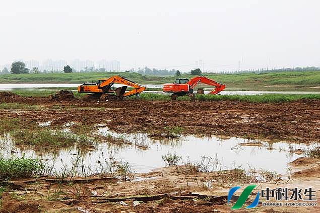 合肥高新區王咀湖生態濕地建設工程-生態補水、底質處理、生態濕地等水生態修復工程于2015年7月1日開工。王咀湖流域屬于巢湖入湖支流派河上游右岸的支流之一,為環保規劃內項目列入環巢湖生態保護修復二期工程。 王咀湖匯水面積約為7.61km2,2010年實施擴容后,湖面面積為0.61km2(610000平方米),死水位34.4m,正常蓄水位37.7m,相應庫容140萬m3,50年一遇設計洪水水位38.3m,500年一遇校核洪水位39.6m,總庫容277萬m3。工程實施的目標為:在徹底截污的基礎上,進行水生